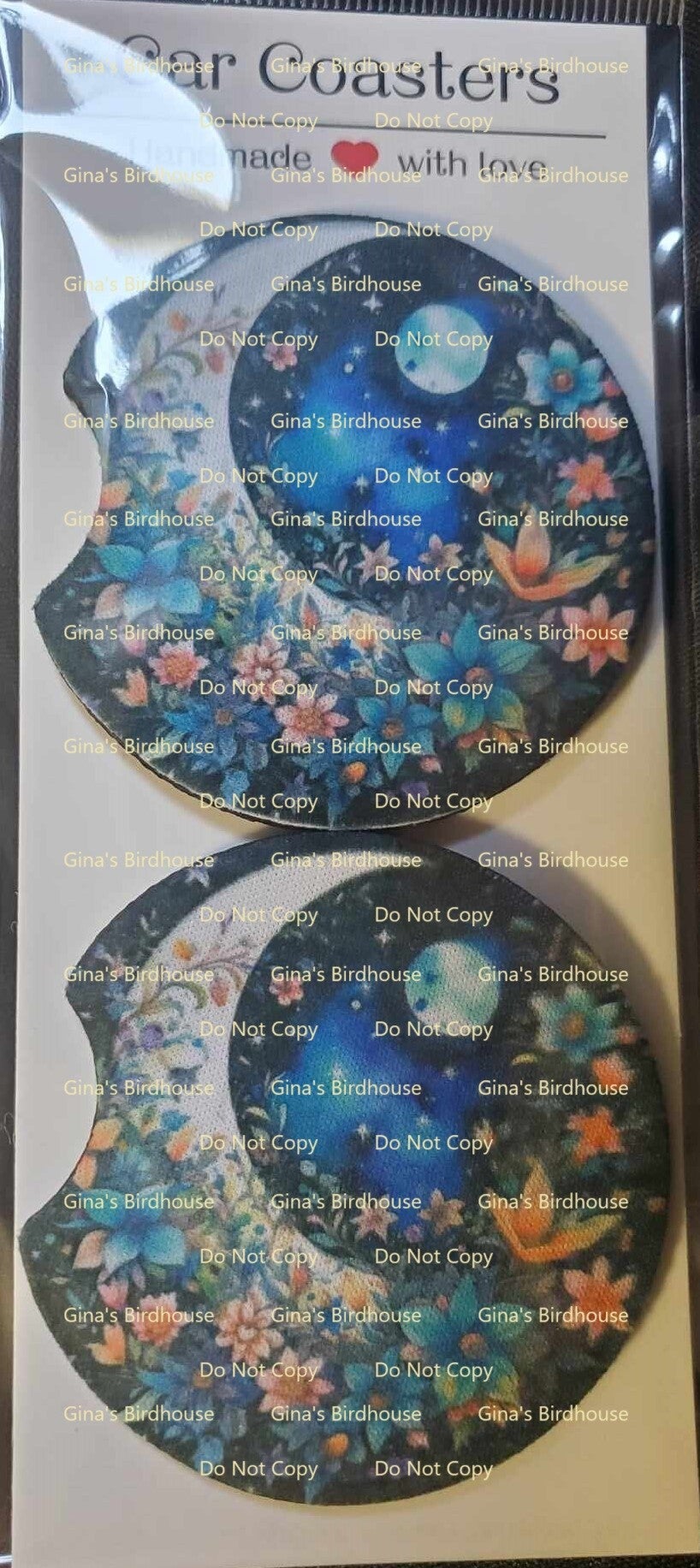 Two neoprene car coasters. Each coaster is aproximently 2.75"x2.75" in size.