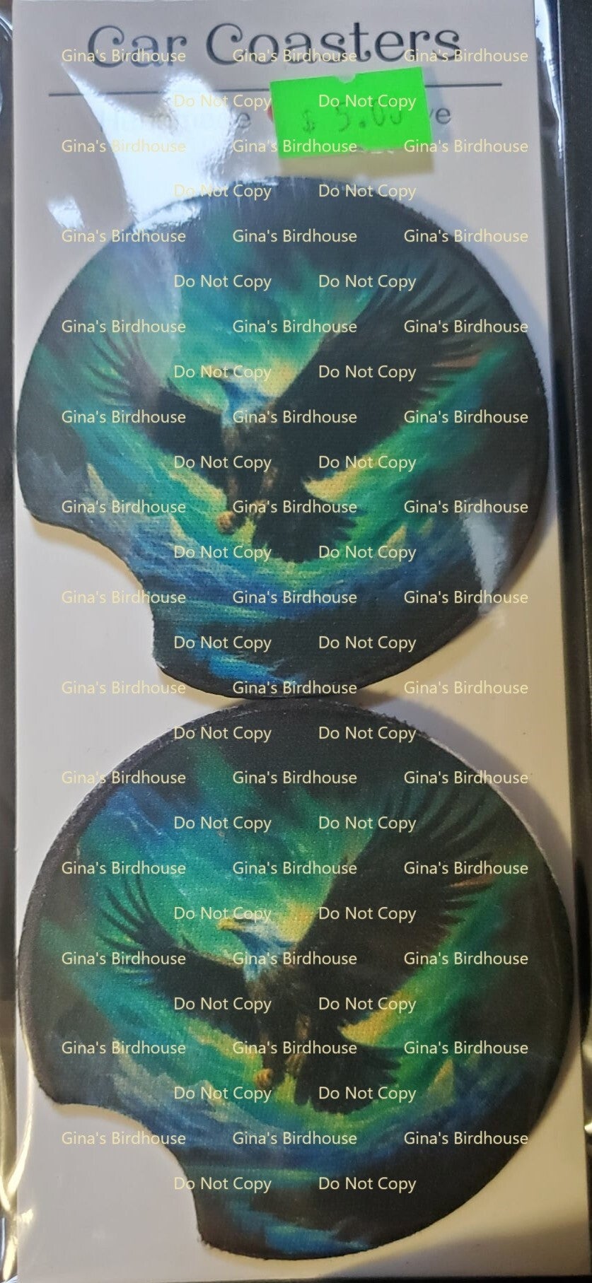 Two neoprene car coasters. Each coaster is aproximently 2.75"x2.75" in size.