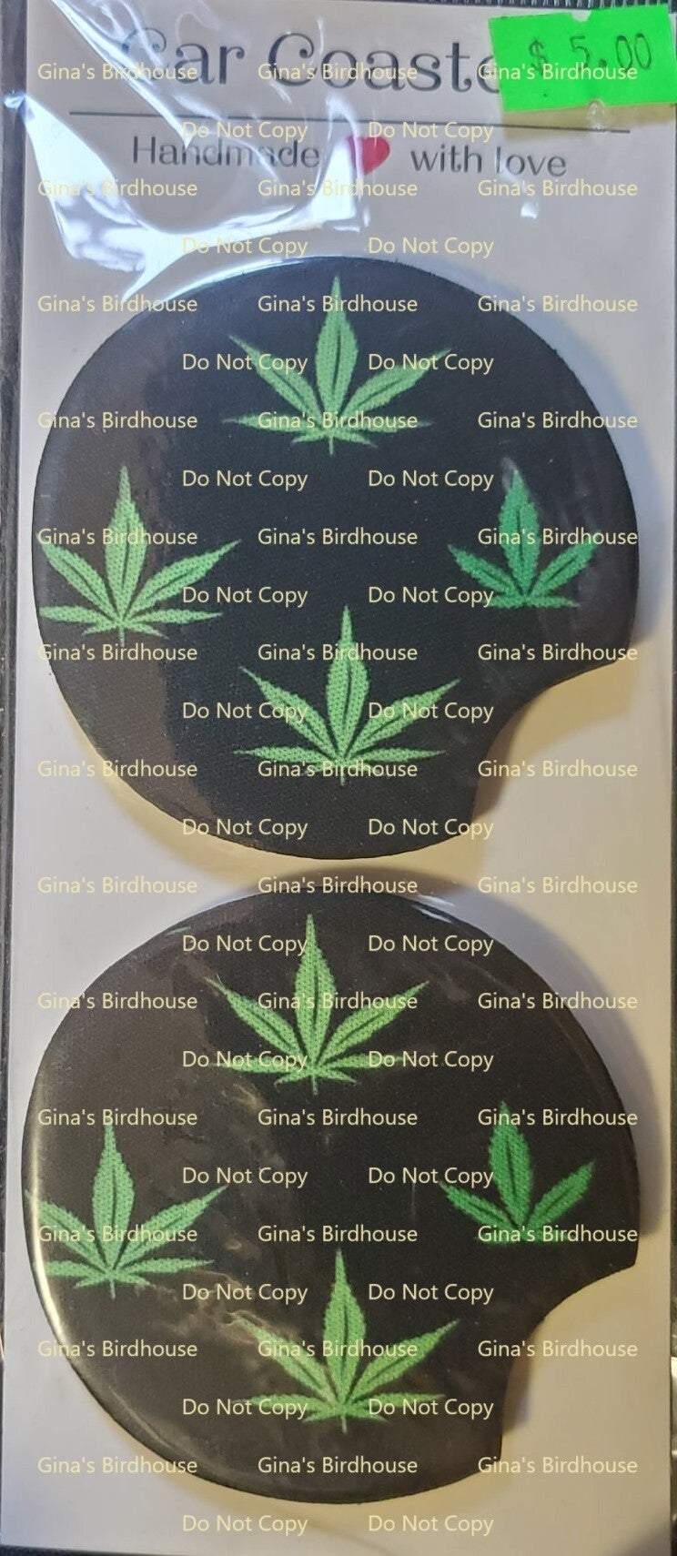 Two neoprene car coasters. Each coaster is aproximently 2.75"x2.75" in size.